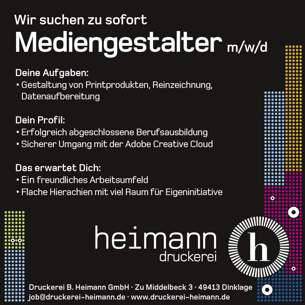 Du interessierst Dich für Technik? – Du bist kreativ, freundlich, flexibel, engagiert und motiviert? Dann komm in unser Team. Sende Deine Bewerbung bitte an: job@druckerei-heimann.de